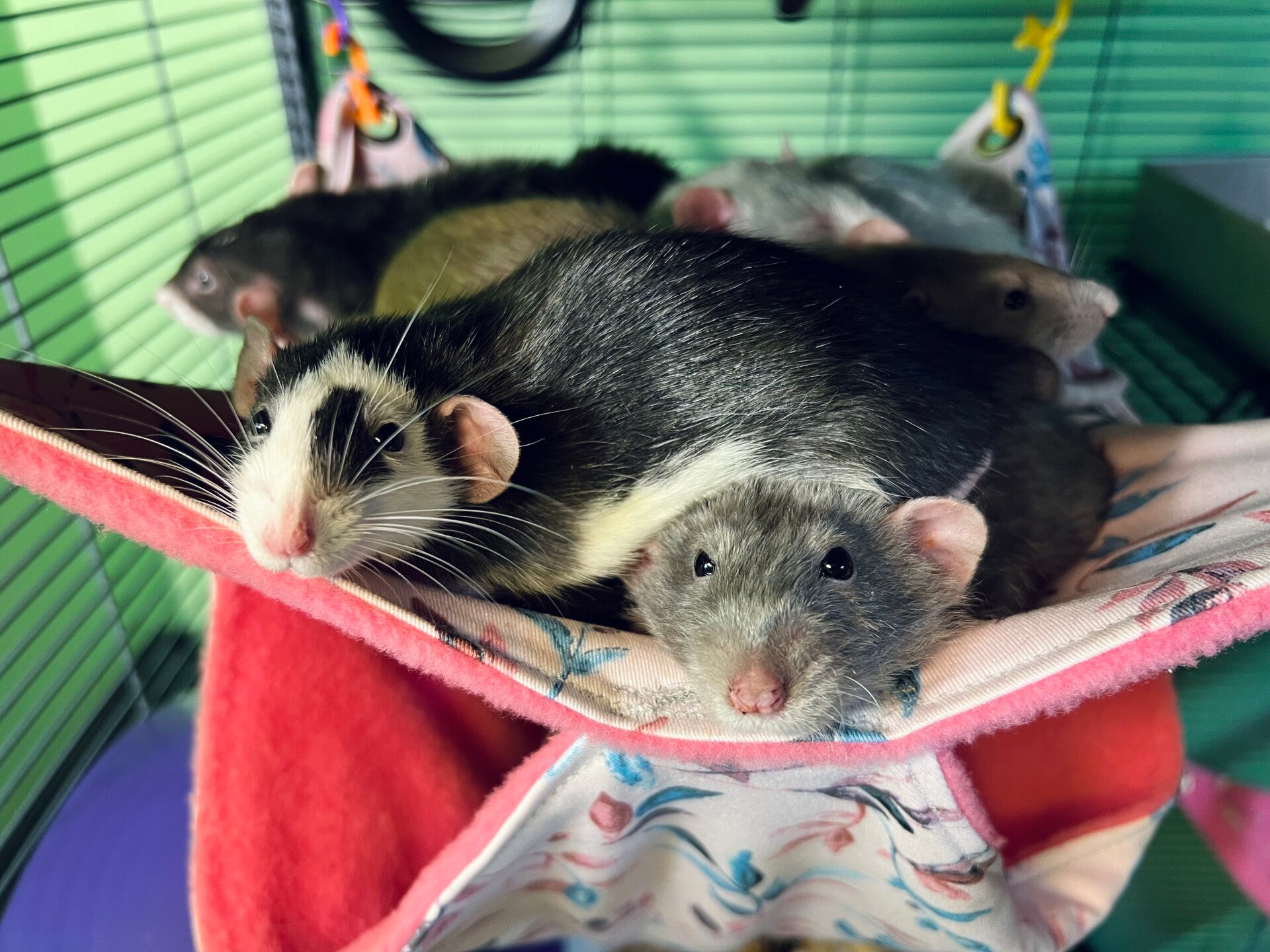 - Hammocks, hammocks, and more hammocks! Rats love to lounge around in a soft, cozy hammock. Fleece hammocks are ideal! Make sure to have a few sets, as they will need to be changed out and washed regularly. (Use fragrance free laundry detergent if using a washing machine!)